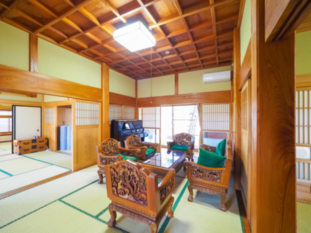 那珂川別邸の主屋には、広々とした和室や洋室が配され、多彩な空間でのんびりと過ごすことができます。また、離れには3つの洋室があり、大人数での滞在やグループでの利用にも最適です。設備も充実しており、檜ぶろや業務用カラオケ、高速Wi-Fiなど、滞在中に必要なものはすべて揃っています。